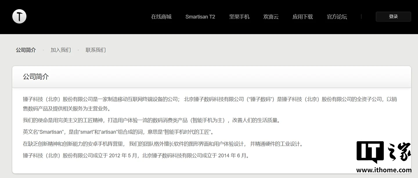 IT之家查询锤子科技官网发现,这家公司的英文名“Smartisan”是由“smart”和“artisan”组合成的词,意思是“智能手机时代的工匠”。