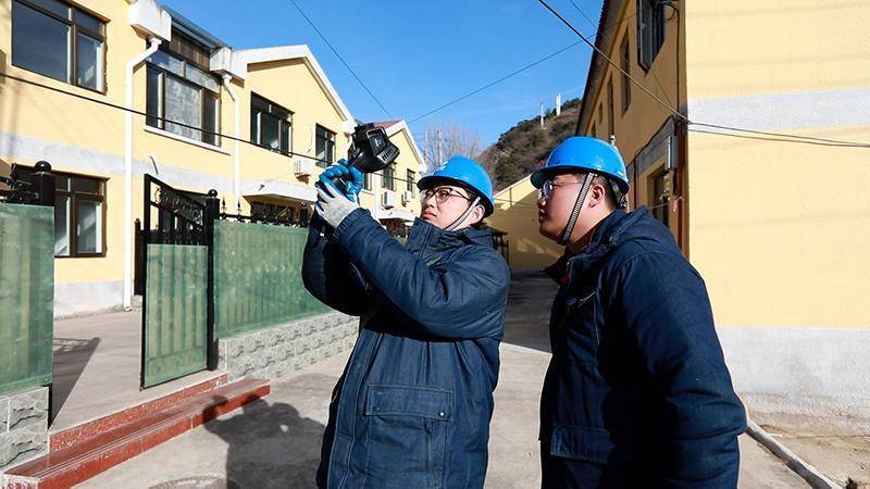 2月5日,国网北京密云供电公司冯家峪供电所张子航、卢欢,对石洞子村供电线路进行巡视测温。林一轩摄
