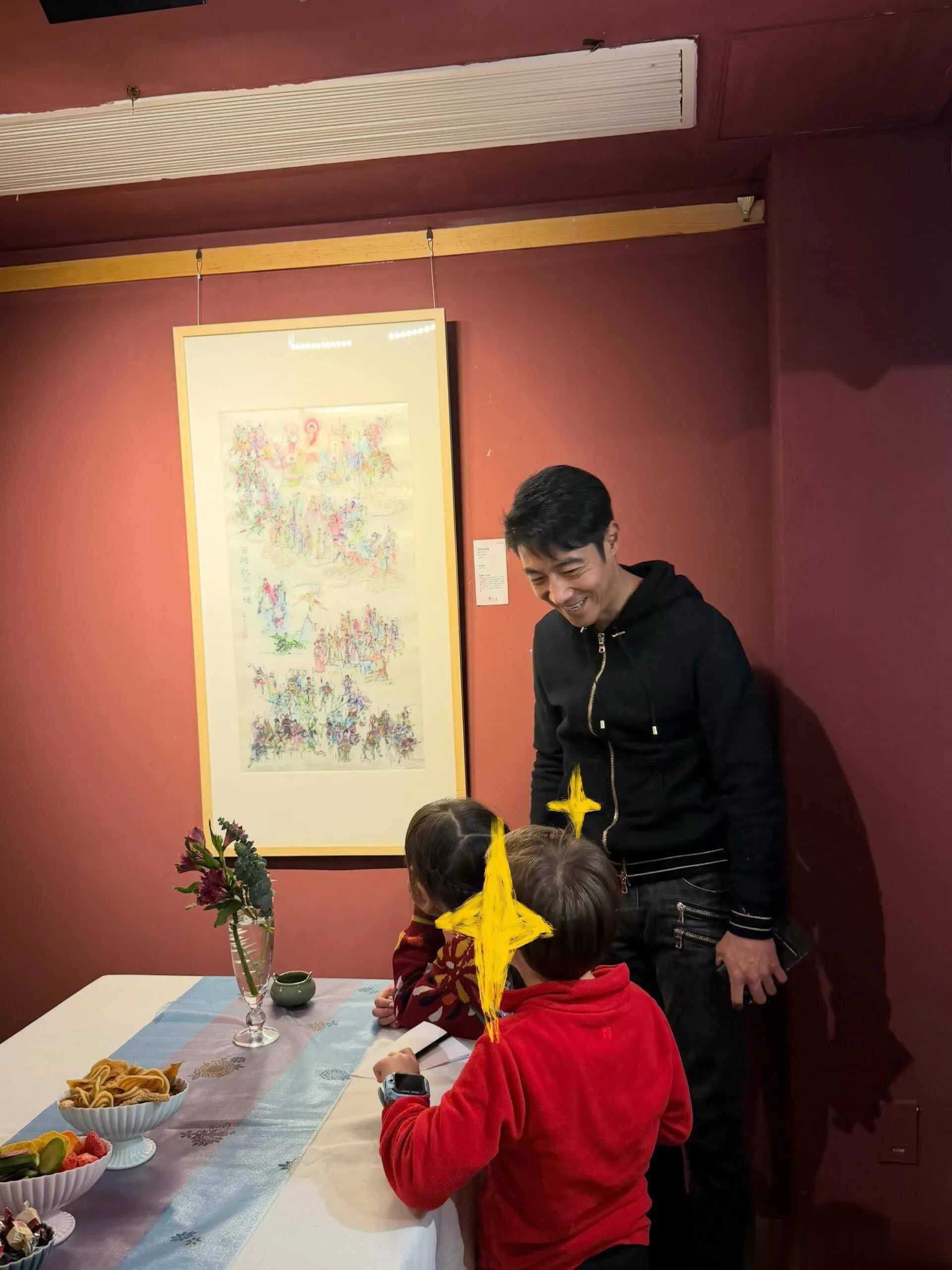 撒贝宁近些年春节都回武汉探亲,每次都会被不少网友偶遇。大年初四,撒贝宁带着一双龙凤胎子女在武汉参观艺术馆,他一脸宠溺地看着俩孩子,画面里,撒贝宁与妻子李白各带一个孩子,6岁的龙凤胎子女坐在行李车上代步。撒贝宁身着绿色外套,戴着口罩,打扮低调,他拉着坐行李车的女儿等待电梯,见到镜头友善地打招呼。女儿皮肤白皙,混血特征显著,模样极为软萌可爱。真的好有爱。