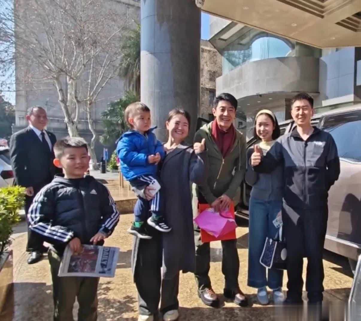 大年初六,有网友晒出在酒店门口偶遇到撒贝宁一家,撒贝宁跟网友们热情合影,他面带笑容,网友大赞本人非常随和有亲和力。