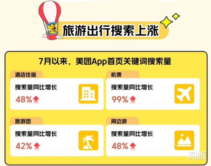美团《2025暑期热点及趋势报告》里几个数字很炸:七月以来,美团App机票搜索量同比飙升99%,酒店涨48%,周边游搜索量增长48%,旅游团搜索量上升42%。