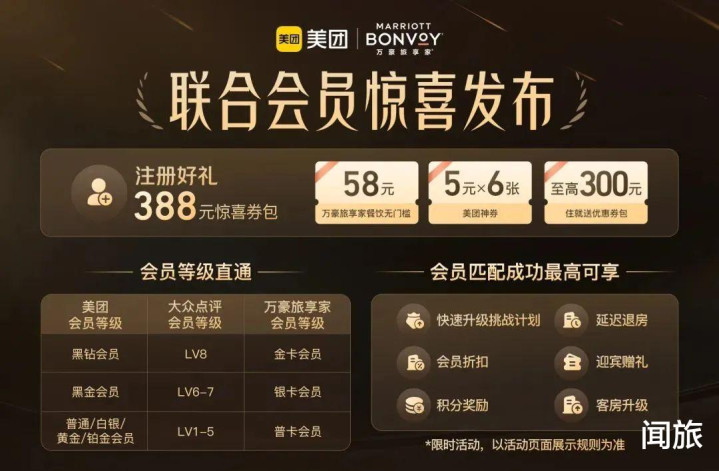 今年五月,美团和万豪国际牵手,黑钻会员绑定即送万豪金卡。
