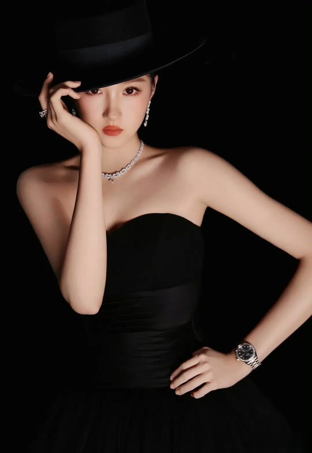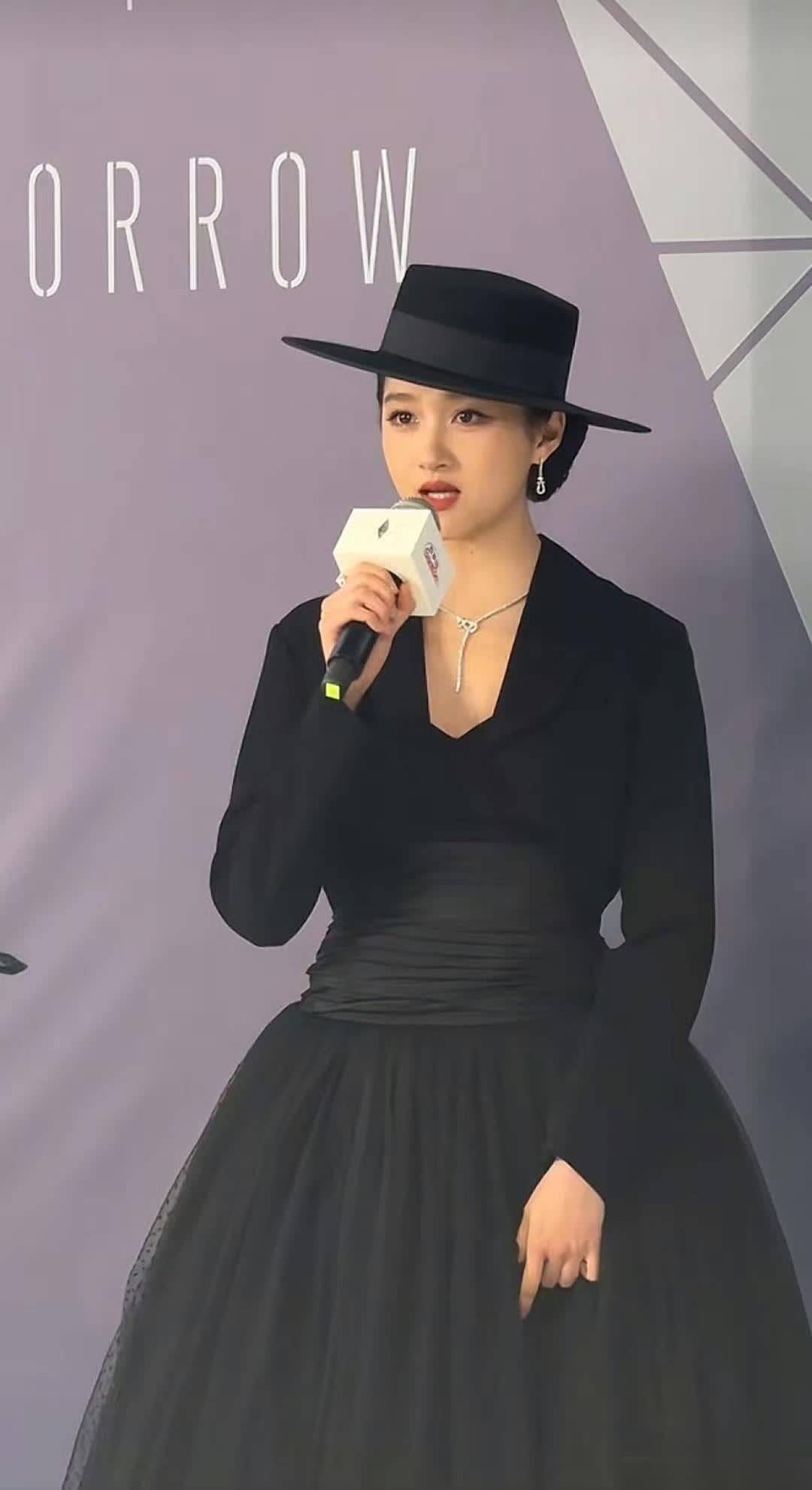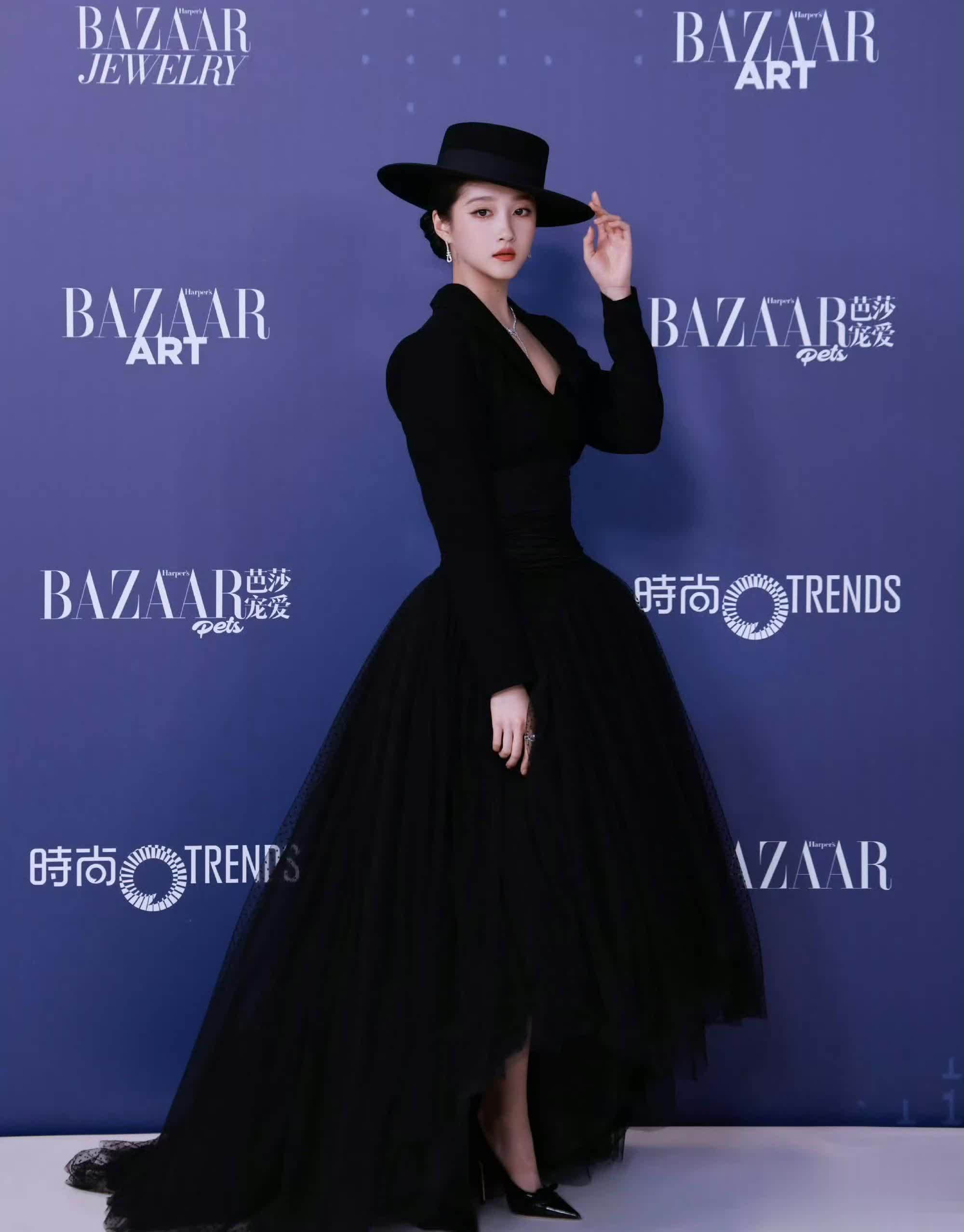 关晓彤此次全黑色系亮相,黑色宽檐圆顶礼帽成为关键配饰,半遮面设计营造出神秘氛围,被网友调侃为“特务G式摩登”。
