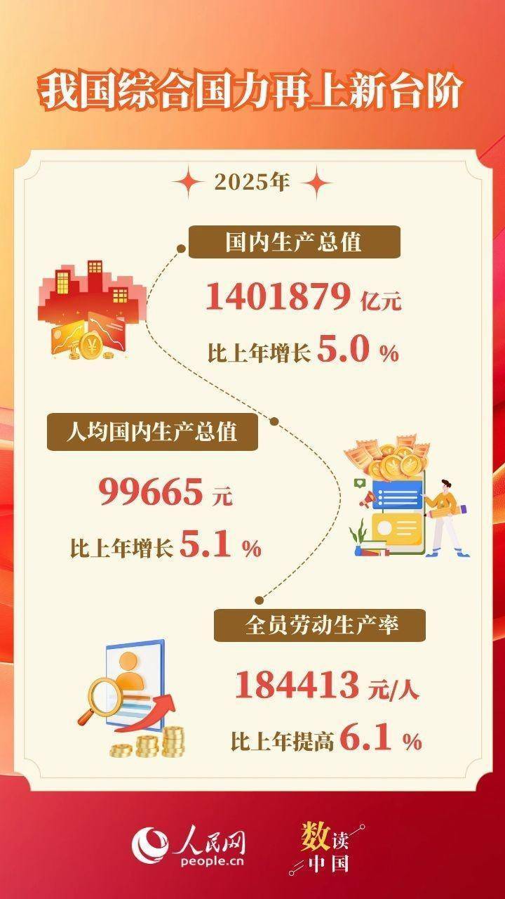 人民网北京2月28日电 (记者杨曦)国家统计局28日发布《2025年国民经济和社会发展统计公报》显示,初步核算,2025年国内生产总值1401879亿元,比上年增长5.0%,经济总量实现新跨越。