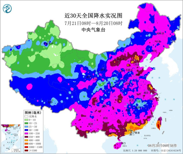 近30天全国降水实况图。中央气象台供图